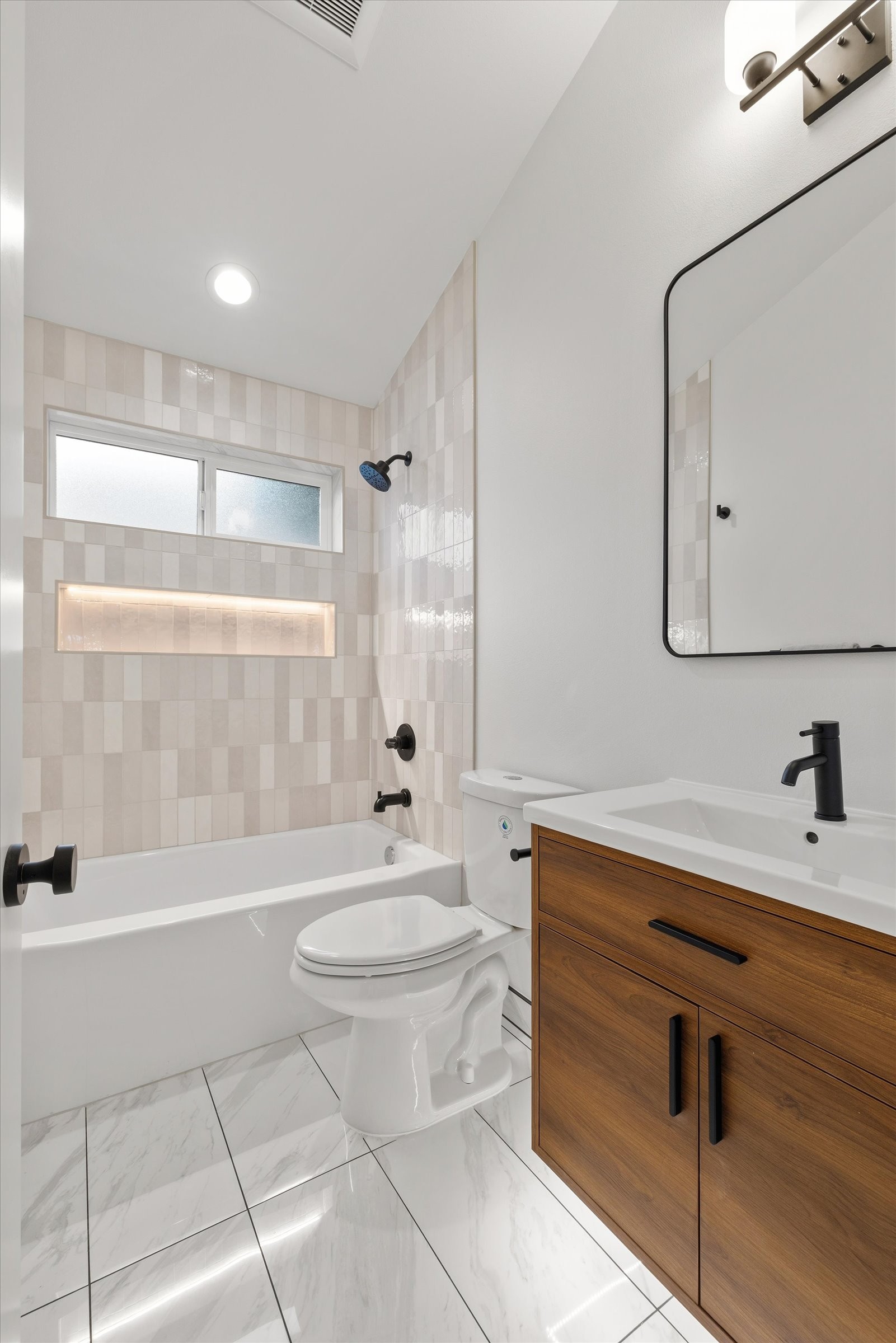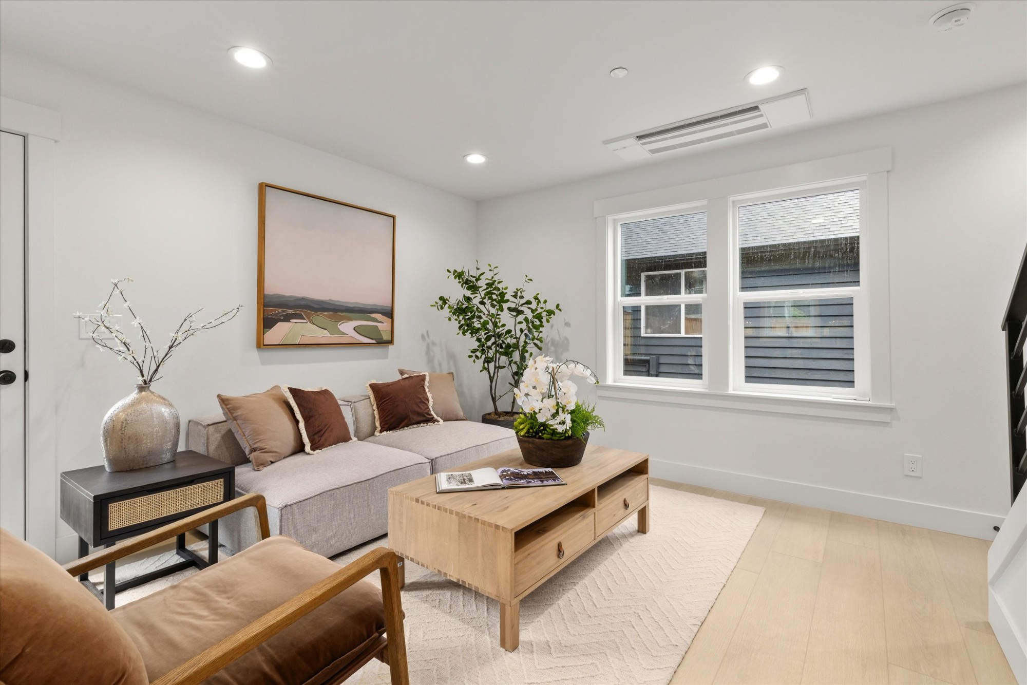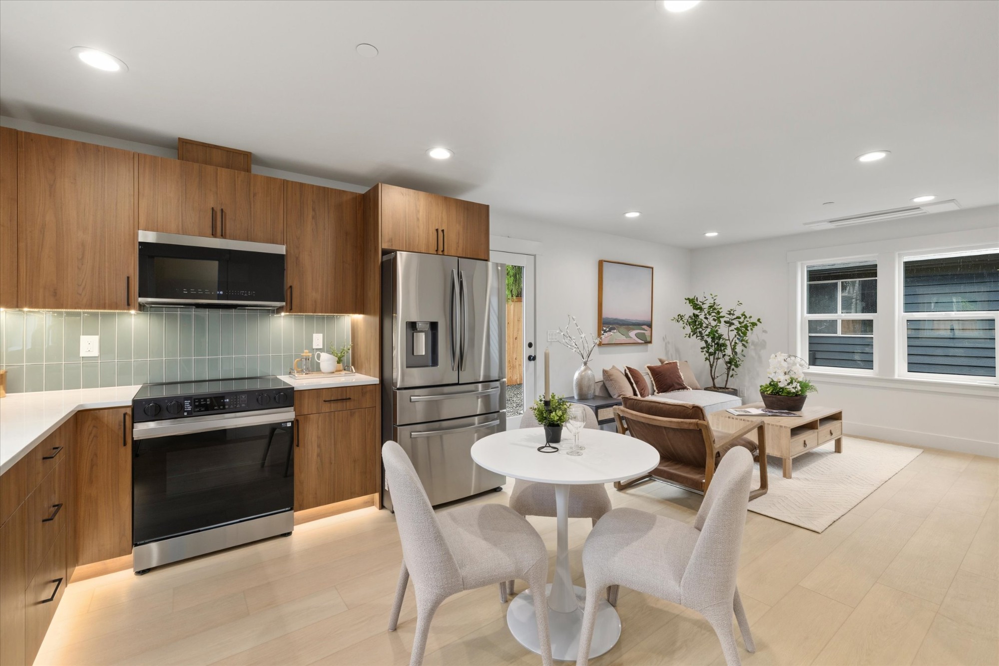 Tucked into a close-knit pocket of Olympic Hills known for neighborhood connection and pride of ownership, this thoughtfully designed 3 bed, 2.5 bath home offers 1,089 sq ft of efficient, modern living with exceptional functionality. Located on a quiet residential street with convenient access to Lake City Way, Pinehurst amenities, parks, and transit, the setting combines everyday convenience with a true community feel. Inside, clean lines and quality finishes define the space. LVP flooring flows throughout, complemented by walnut dovetail soft-close cabinetry, stainless steel appliances, and layered lighting including under-cabinet, toe-kick, and niche LEDs for warmth and depth. The well-designed layout maximizes usability across all three bedrooms, including a primary suite with walk-in closet and bidet for added comfort. A 4-head mini-split heating and cooling system provides year-round efficiency and zoned comfort. Fire sprinkler system enhances safety and may contribute to lower insurance costs. Additional upgrades include a new hot water tank and digital water meter. Attached 1-car garage and an EXTRA parking spot! Large private backyard with patio create rare outdoor flexibility — ideal for entertaining, gardening, or relaxing. A unique opportunity for standalone living with modern finishes in a welcoming Olympic Hills enclave. Walking distance to grocery, pubs, and dining, all within minutes of I-5 mass transit and the new Light Rail station. Come see!